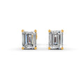 Experience the beauty of Forever Jewels' Emerald Cut Moissanite Stud Earrings. These stunning earrings feature a genuine moissanite stone set in a 4-prong setting, secured with a screw back. The 14K gold plating adds a touch of luxury.