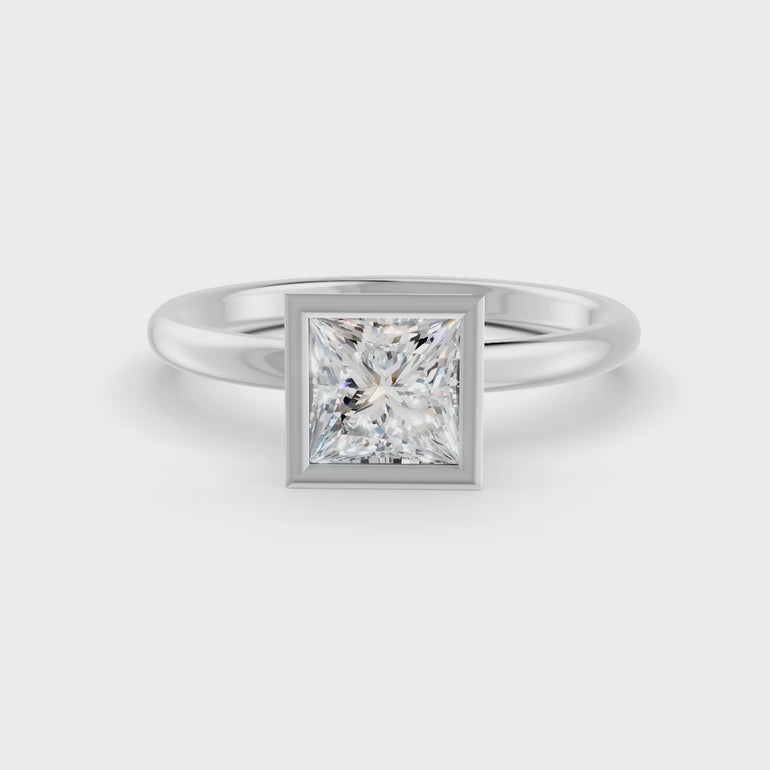 Load and play video in Gallery viewer, Princess Cut Real Moissanite Bezel Set Solitaire Ring 14K Gold Plated