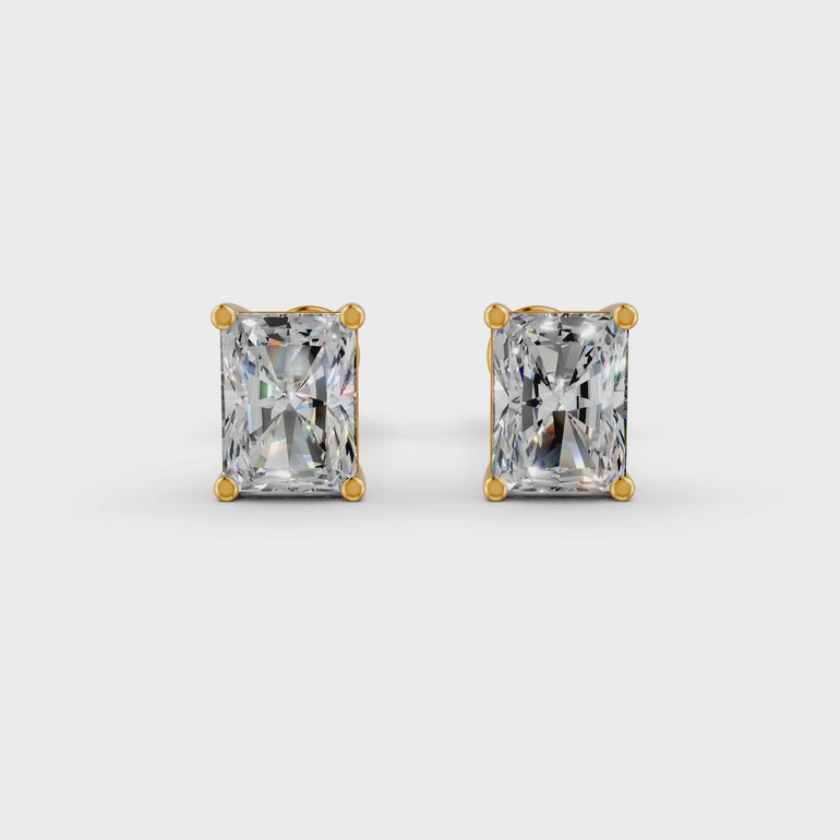 Forever Jewels' Radiant Cut Moissanite Stud Earrings shine with elegance and sophistication. The 4-prong setting showcases the genuine moissanite stone, while the screw back ensures a secure fit. The 14K gold plating adds a luxurious touch.